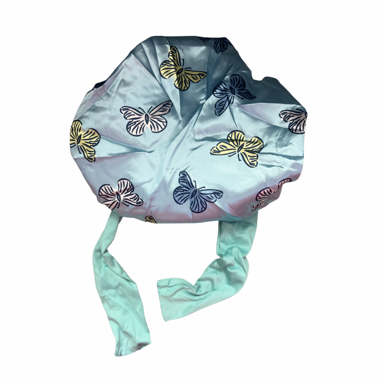 Delight your child’s hair care routine with our Kids Butterfly Tie Bonnet, crafted from soft satin that locks in moisture and reduces frizz. The adorable butterfly design adds a touch of magic, while the adjustable tie ensures a comfy, secure fit for growing heads.